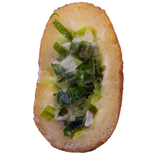 Bolinho de batata com alho poró: o macio da batata e o sabor refinado do alho poró, virou o queridinho da galera.